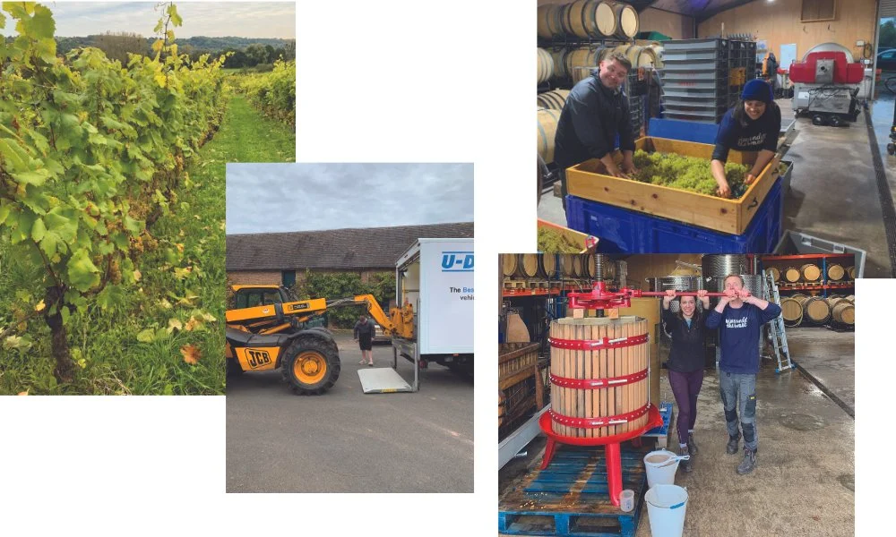 Huxelrebe, A Luton Box Van loading (wing mirror intact) , Paris & Ryan de-stemming, Nic & Dan pressing. Oct 2023